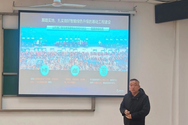 随后,刘教授列举了国内外智慧港口建设典型案例,从项目落地到成果转化全过程展现了科技创新对港口行业的变革力量。最后,针对学生提出的技术难点、行业趋势及就业前景等问题,刘教授进行了详细解答。