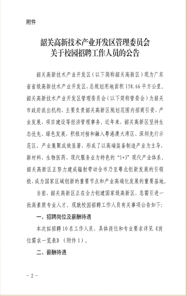 【机构动态】韶关高新技术产业开发区管理委员会关于校园招聘工作人员的公告