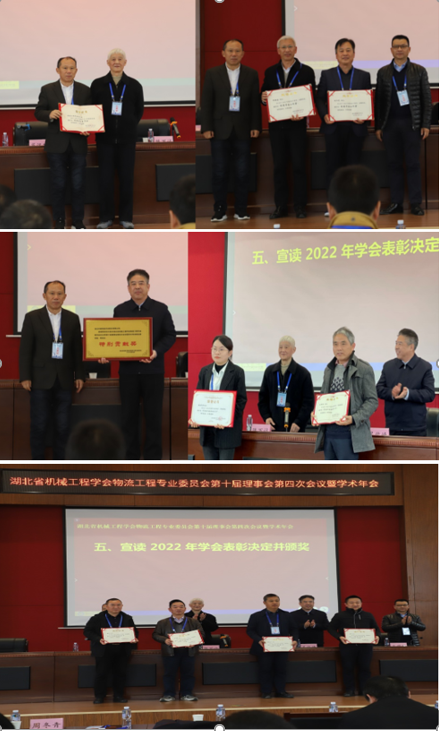 会议宣读了2022年湖北省机械工程学会表彰决定并颁奖。物流工程专业委员会获“先进专业委员会”,湖北科峰智能传动股份有限公司获“特别贡献奖”,肖汉斌教授获“学会特别贡献奖”,我校邵新建和湖北三六重工有限公司周冬青获“学会先进工作者”,湖北佳恒科技股份有限公司金波、武汉港博港机技术有限公司佘黎明、湖北三六重工有限公司赵群、宜都华迅智能输送股份有限公司宋红玖、武汉科技大学王勇、欧美a片 吴洪明、湖北鄂南起重运输机械有限公司李耀成、中国五环工程有限公司魏婷婷获“学会活动积极分子”。