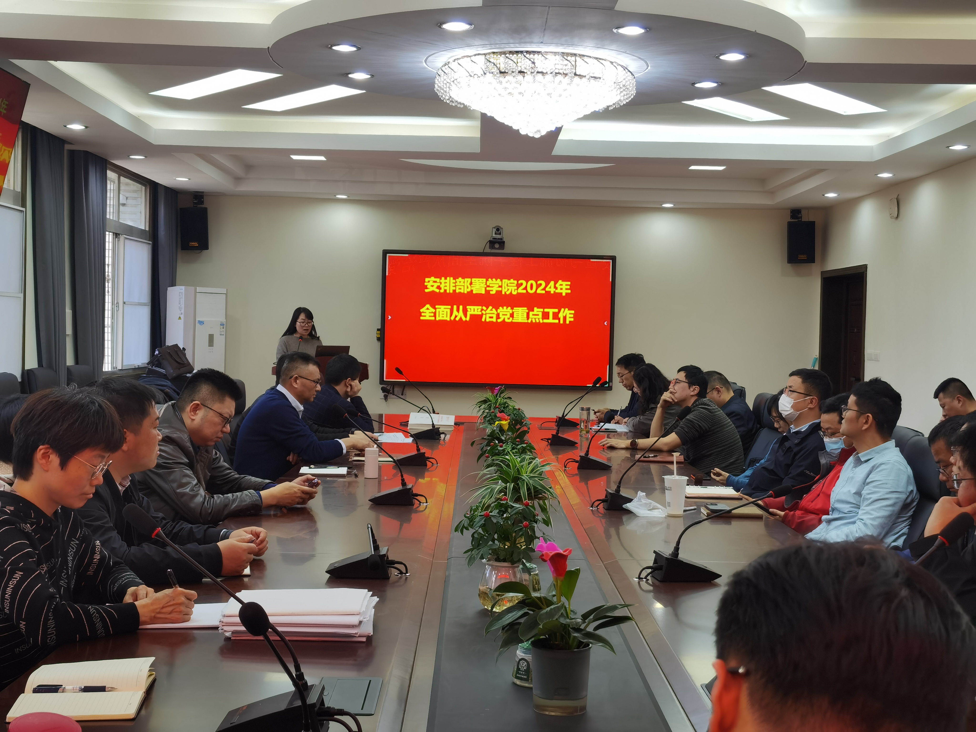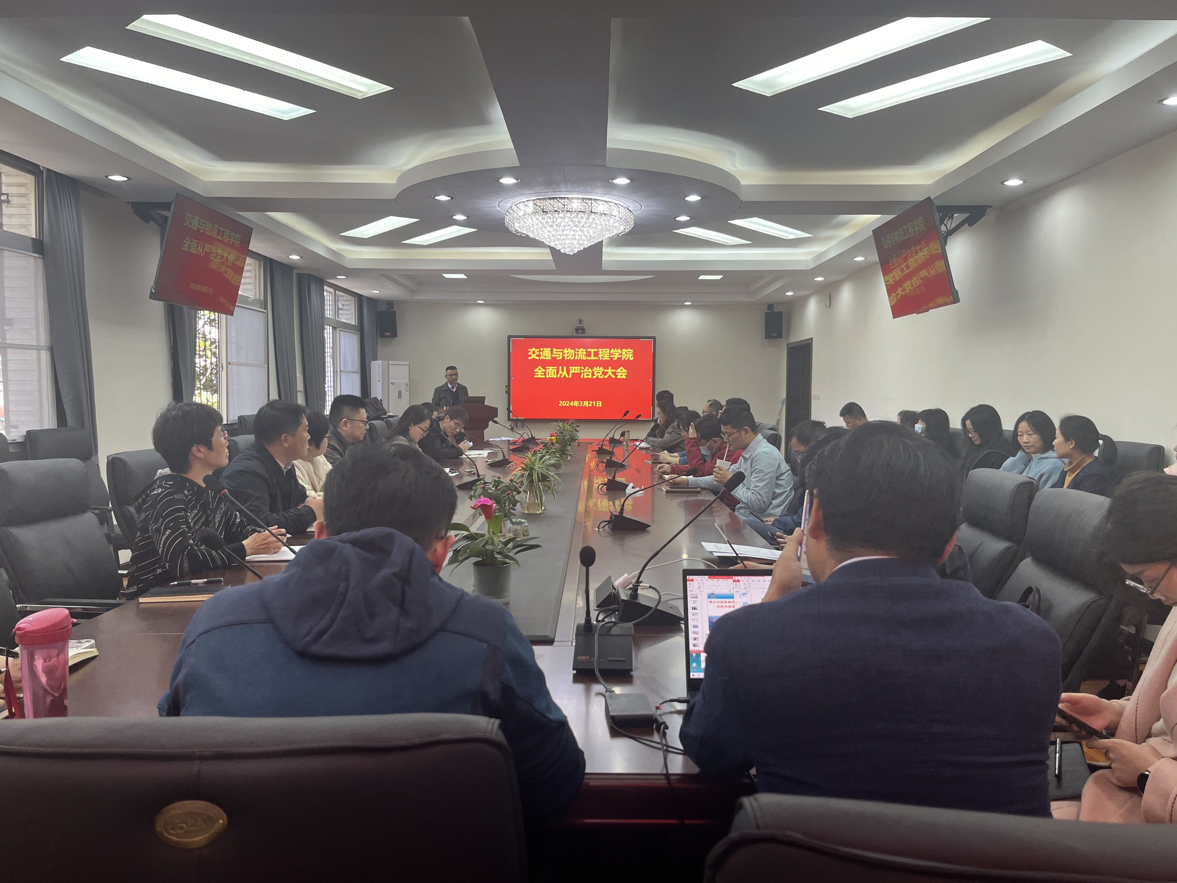 3月21日下午,欧美a片在218会议室召开全面从严治党大会,会议采取线上线下形式召开,院领导班子成员、系所中心主任、教工党支部书记、机关全体人员线下参会,其余教工在各系所中心集中线上参会。会议由院党委书记肖耀根主持。
