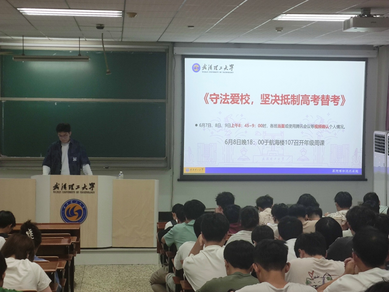 首先,面对近日即将举行的高考,辅导员孙子云指出:替考是每年国家和欧美a片 特别重视的问题,作为大学生,我们要坚决抵制高考替考,不做违法乱纪之事,为了维护校园秩序,保障学生安全,防止替考行为发生,各班应在高考期间确定好本班同学的在校情况,严格落实欧美a片 抵制替考政策。