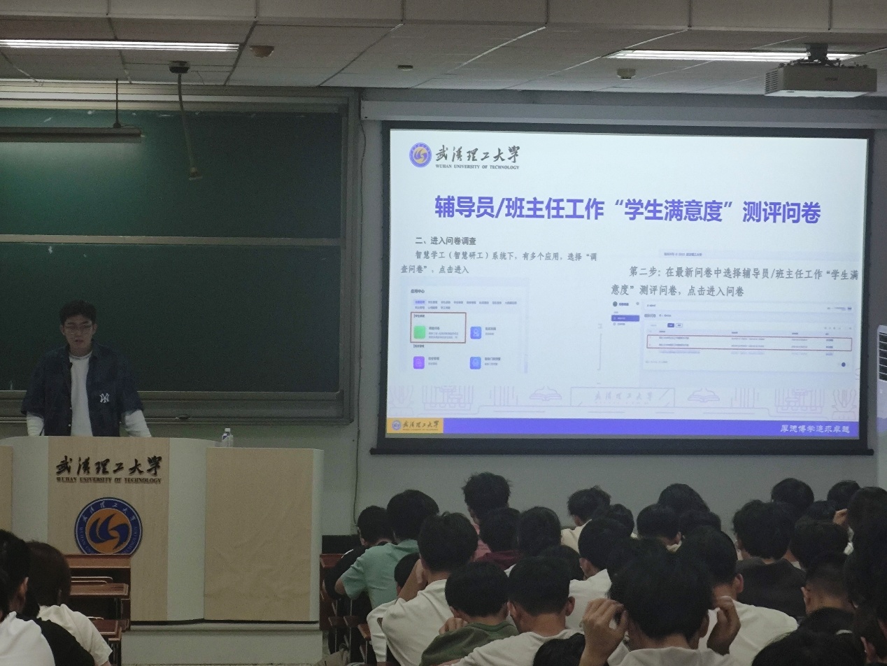 随后辅导员孙子云提醒同学们近期完成“辅导员/班主任工作‘学生满意度’测评问卷”,问卷旨在提升教师工作质量,请同学们务必认真按时填写。之后孙老师向同学们传达了2025-2026学年家庭经济困难学生认定工作已经开展的通知,提醒相关同学一定在截止日期之前提交申请,各班要积极准备评议工作。