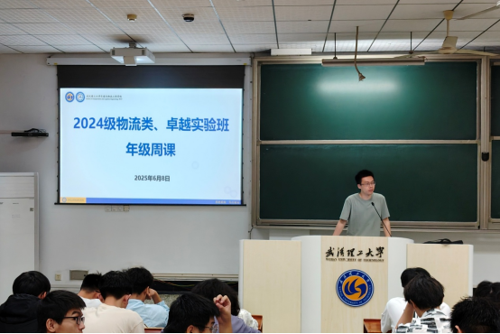 期末将近,为宣贯期末有关事宜,6月8日晚,24级物流专业、卓越实验班于航海楼111教室举行第十五周年级周课。本次年级周课由辅导员田纪伟老师主持,24级物流专业、卓越实验班全体同学参与。