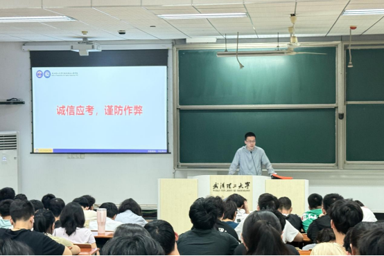 会议伊始,田老师首先对近期通知进行宣贯,对同学们近期关心的“职业生涯规划训练营”、“宿舍分配”等问题进行了解释,同时,田老师还提醒各位同学要提前做好暑假期间宿舍的防霉防潮,备考之余收拾个人物品,为下学初宿舍搬迁做准备。紧接着,田老师将“诚信应考,谨防作弊”八个字展示给同学们,说明了考试作弊的后果,再次为同学敲响警钟。