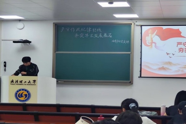 活动中,覃璟同志引领全体成员深入学习党的纪律体系。他指出,党的纪律作为各级党组织与全体党员必须严格遵循的行为准则,在党的建设中发挥着关键作用。覃璟同志不仅围绕政治纪律、组织纪律、生活纪律等核心内容,结合实际案例进行了深入浅出的讲解,还特别强调了学术道德规范的重要性。他通过剖析几起典型的学术不端案例,呼吁同学们坚守学术良知与操守,以扎实的学识和诚实的态度践行学术使命。