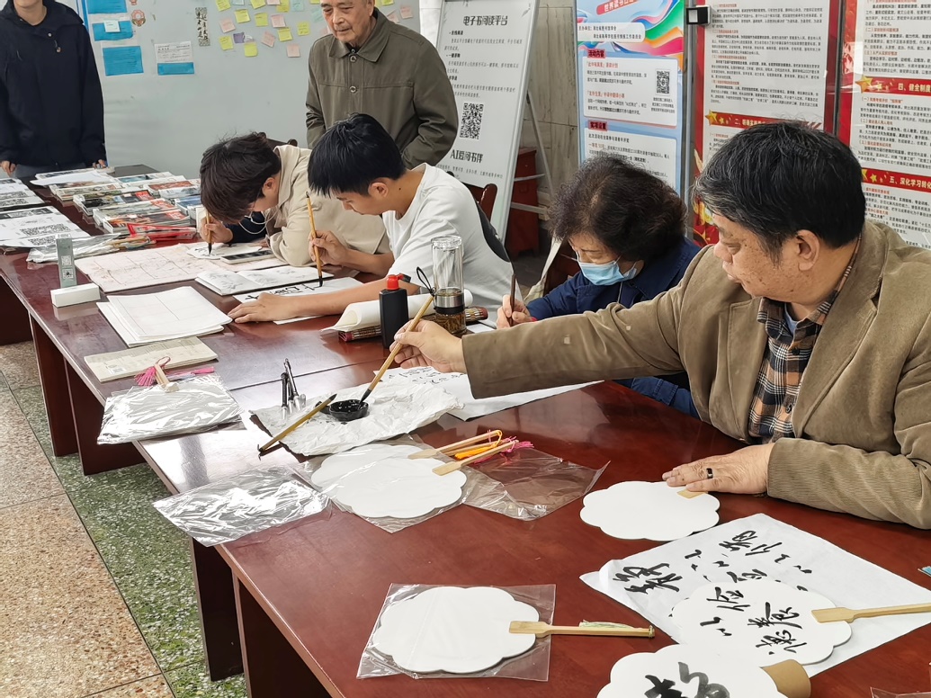 上午8时30分,活动正式拉开帷幕。二楼大厅内人头攒动,各活动摊位前很快排起了长队。书法区弥漫着淡淡的墨香,同学们提笔挥毫,在空白扇面上留下或工整娟秀、或洒脱奔放的字迹,一件件亲手绘制的扇面作品为活动增添了浓郁的传统文化韵味。