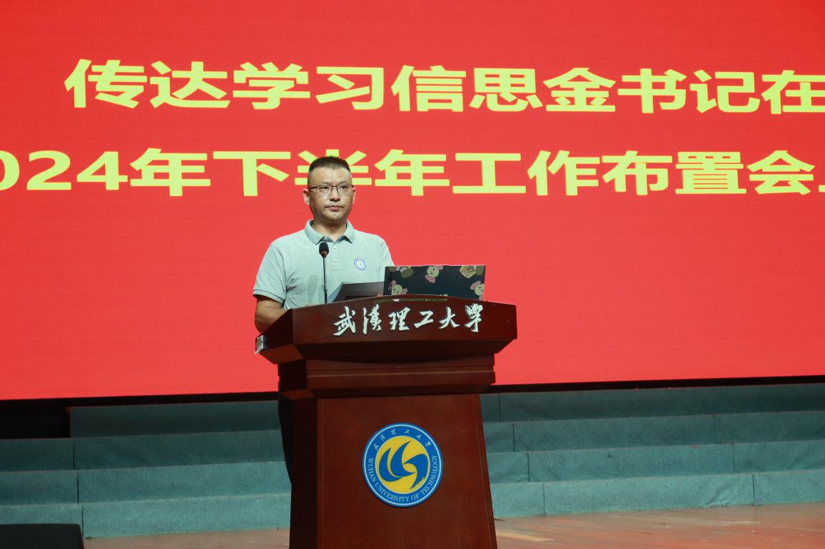 院党委书记肖耀根传达学习了校党委书记信思金《紧扣主线 突出重点 以高质量发展的实绩实效助力教育强国建设》的讲话精神。他指出,下半年,欧美a片师生要将学习贯彻党的二十届三中全会、全国教育大会和教育强国建设规划纲要精神作为主题主线,积极投身改革,坚持学用结合、学以致用,自觉把二十届三中全会、全国教育大会和教育强国建设规划纲要精神与自身岗位职责使命联系起来,不断增强党组织的政治功能和组织功能,以高质量党建助推欧美a片高质量发展。