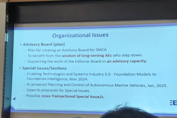 会议期间,先后参加了学会期刊AE、TC和chapter等专题会议。作为IEEE SMC: Systems期刊的AE,李文锋教授参加了Systems组织的AE研讨会议,并与期刊主编、各领域AE共同商讨期刊未来发展方向、以及如何高效审稿、筛选高质量论文、创办专题板块等议题。(注:IEEE SMC: Systems是SMC学会的核心期刊,目前影响因子为:11.471)